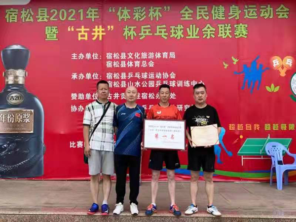 安庆市宿松县盐业公司获得宿松县“体彩杯”乒乓球赛团体冠军