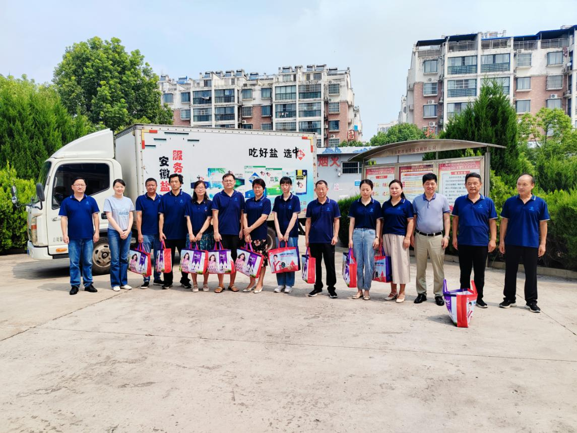 炎炎夏日送清凉,滴滴关怀暖人心,一份清凉一份关怀。8月11日安徽盐业发展有限公司工会组织夏日送清凉慰问活动。公司工会主席曹明新带队前往长丰、淮南盐业公司向一线营销人员进行现场慰问,并送去防暑降温物资。