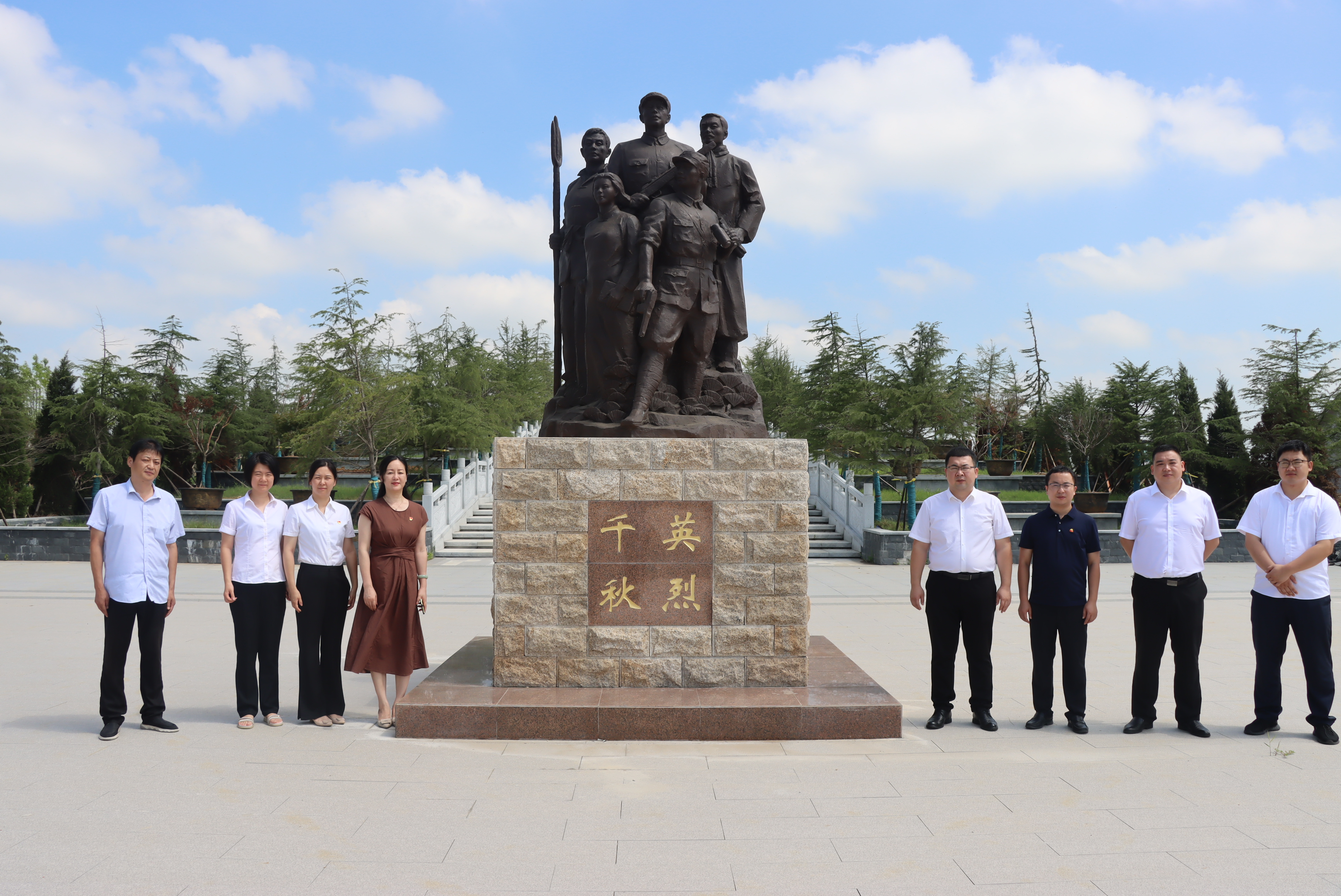 最后,大家一同前往长丰县烈士陵园,浩气贯长虹,丰碑一座;北乡歌烈士,伟绩千秋。迈上28级台阶,象征1921年建党到1949年建国28年艰苦奋斗历程。登上台阶后,来到公祭广场,映入眼帘的是高21.7米的革命烈士纪念碑,在红星的照耀下,毛体金字“革命烈士永垂不朽”熠熠生辉。大家庄严肃穆,缅怀革命烈士。