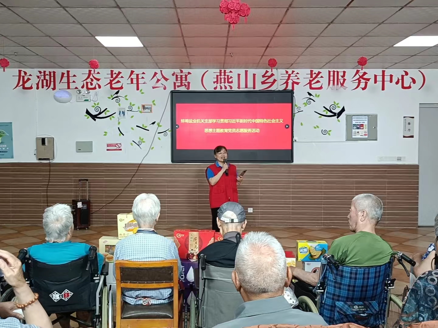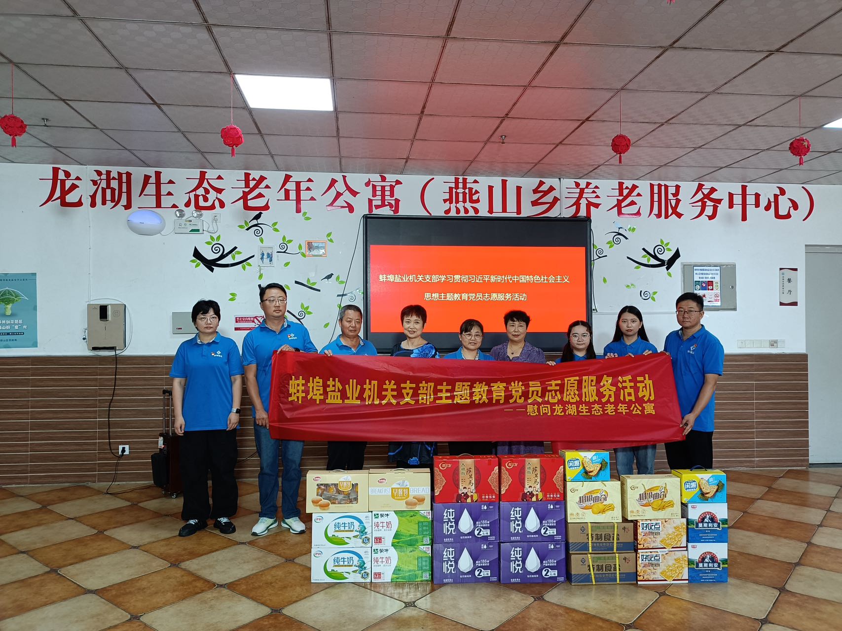 为深入推进学习贯彻习近平新时代中国特色社会主义思想主题教育,传承和弘扬中华民族尊老敬老的传统美德,营造爱老助老的良好社会氛围,7月29日上午,蚌埠市盐业公司机关党支部组织党员志愿者到龙湖生态老年公寓开展主题教育党员志愿服务活动。