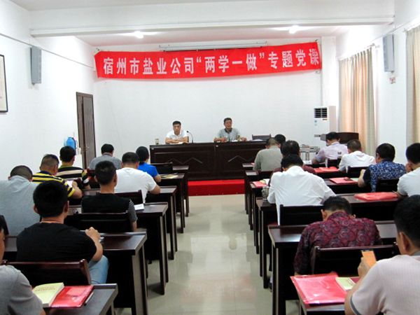 为深入贯彻学习“两学一做” 学教活动精神,增强党员党性观念,持续推进公司经营改革工作,按照市公司“两学一做” 学教活动安排,6月28日下午,宿州市公司邀请中共宿州市委党校综合教研室主任杜林教授根据当前全党开展“两学一做”学教活动的要求和宿州盐业经营改革的实际,为全体党员上了一堂题为“学党章,话改革,做合格党员”的专题党课。
