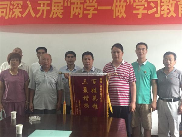 7月10日上午,界首市公司帮扶结对及秸秆禁烧工作责任区的界首市光武镇李庙王行政村两委一行8人,为界首市公司送来一面上书“百姓英雄 三夏楷模”的锦旗。