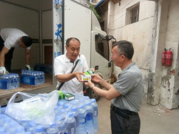 公司副经理姚启国一行看望了正在配货上车的业务人员,送上了风油精、人丹、蒮香正气口服液等防暑降温药品,叮嘱大家:安全生产是重中之重,要尽量避开高温时段,多注意休息,确保人员身体健康和安全。