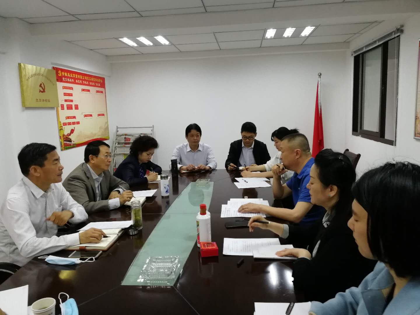 安盐商贸公司党支部书记、总经理刘京就近两年经营情况、今年一季度销售业绩、公司管理工作思路及重点工作进行了汇报,副总经理叶敏就党建工作进行了汇报。