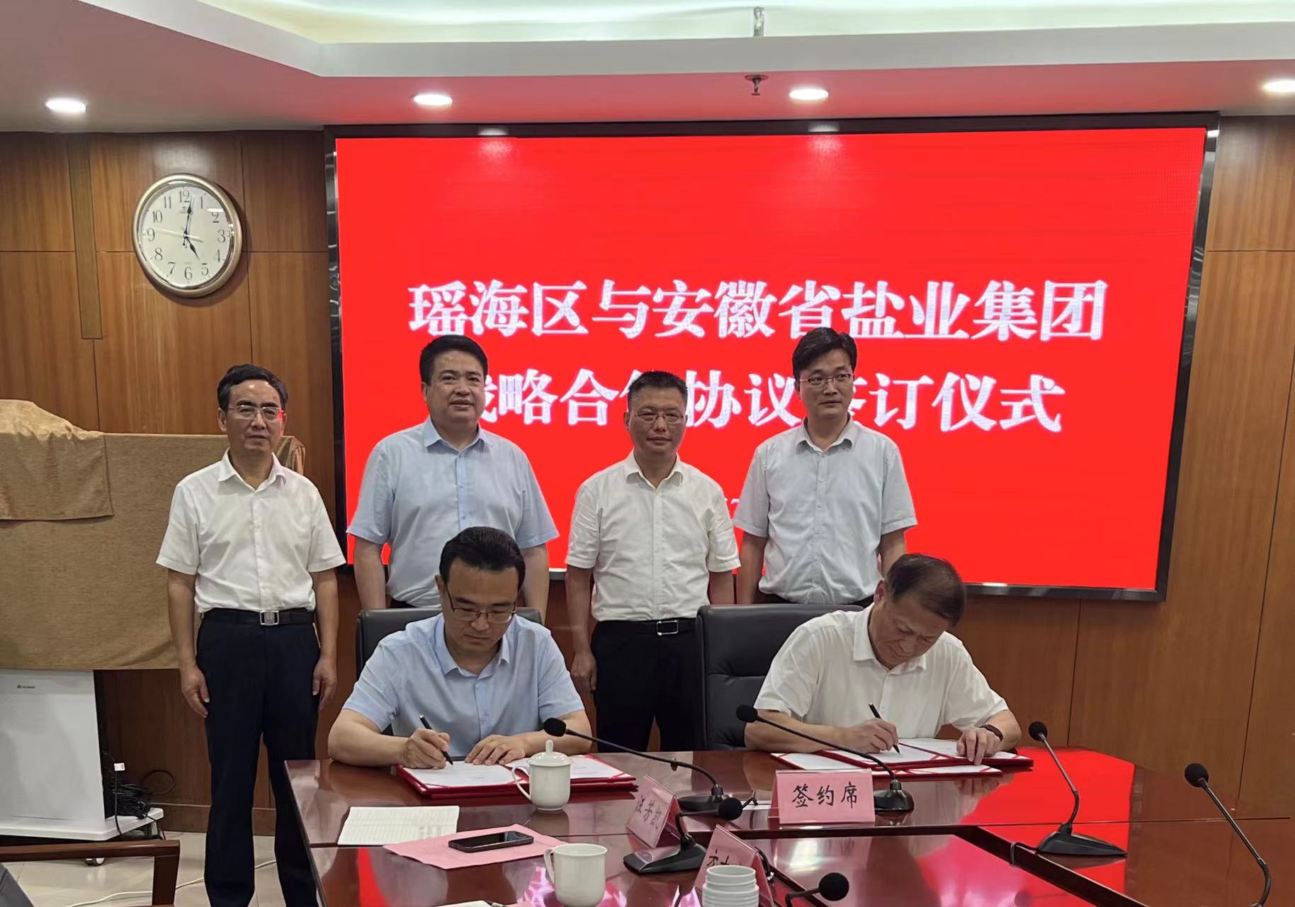 7月19日,省盐业ag亚娱官方网站入口与瑶海区签署战略合作协议。ag亚娱官方网站入口党委书记、董事长罗太忠,党委副书记、总经理、董事王思军,瑶海区委书记、合肥东部新中心党工委书记陆勤山,区委副书记、区长童友好出席签约仪式并见证签约。