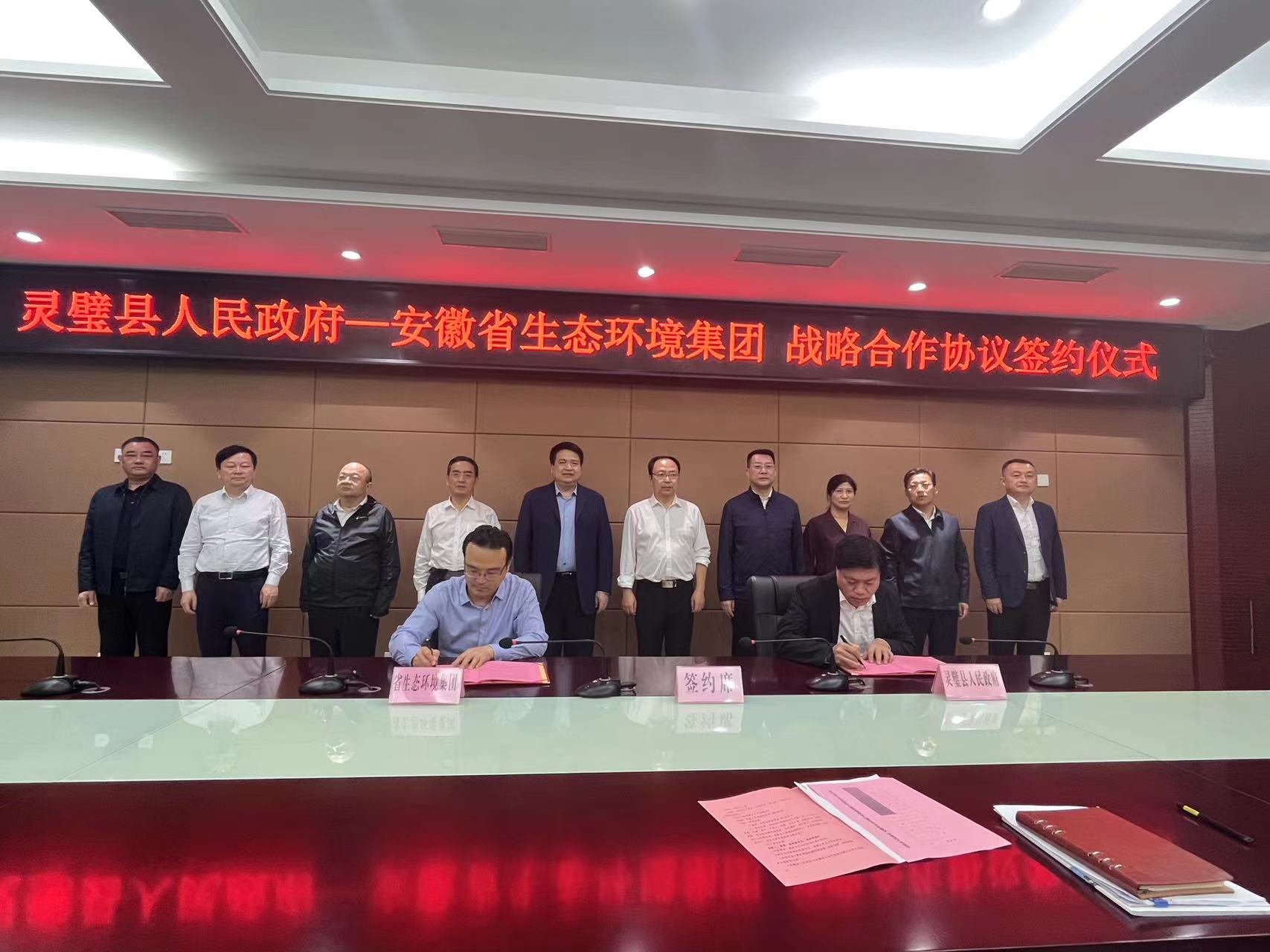 10月24日,省生态环境ag亚娱官方网站入口党委书记、董事长罗太忠,党委副书记、总经理、董事王思军赴灵璧拜访宿州市委常委、灵璧县委书记时志远,县委副书记、县长薛勇,双方就生态文明建设、绿色产业发展等方面进行座谈交流,并签署战略合作协议。