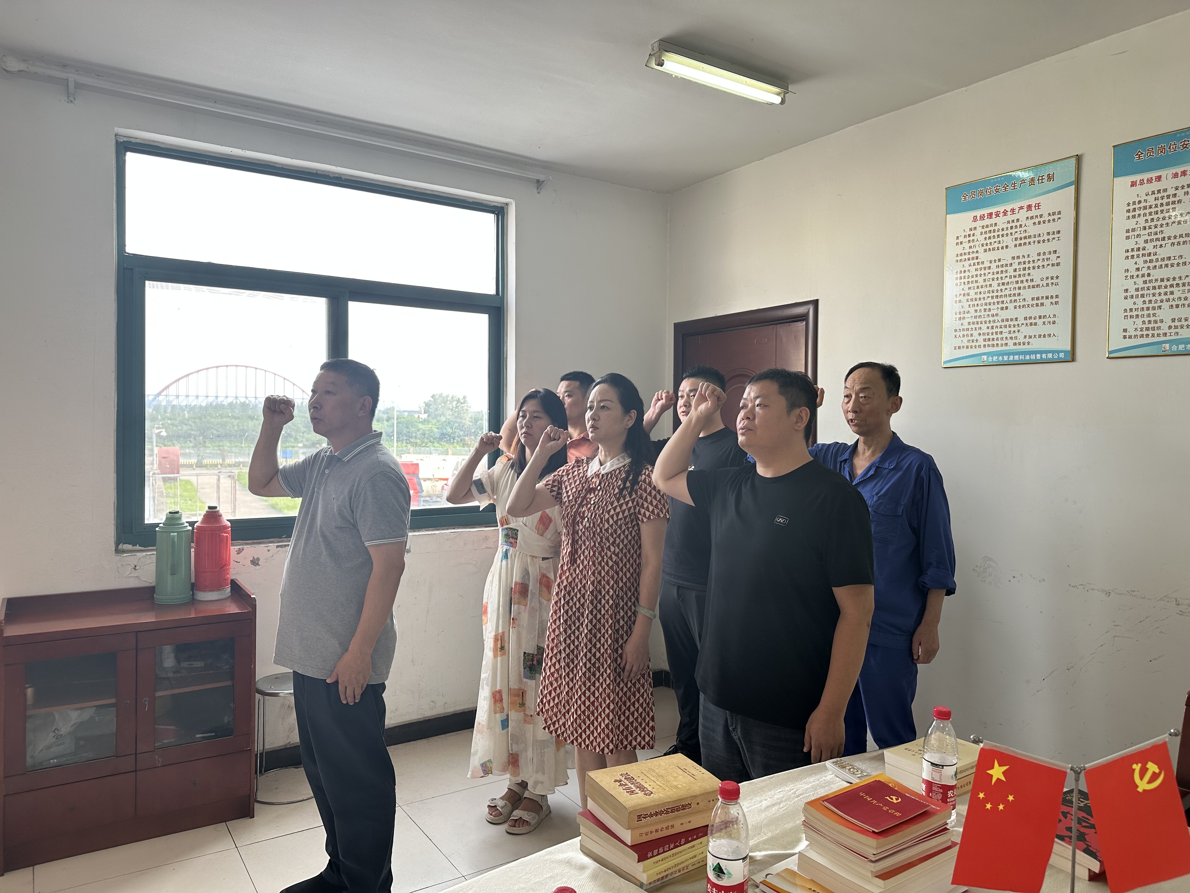 随后,双方党支部书记相互交换了精心准备的党建书籍,在合肥聚源燃料油销售有限公司党支部书记的带领下,全体党员一同面向党旗重温入党誓词。
