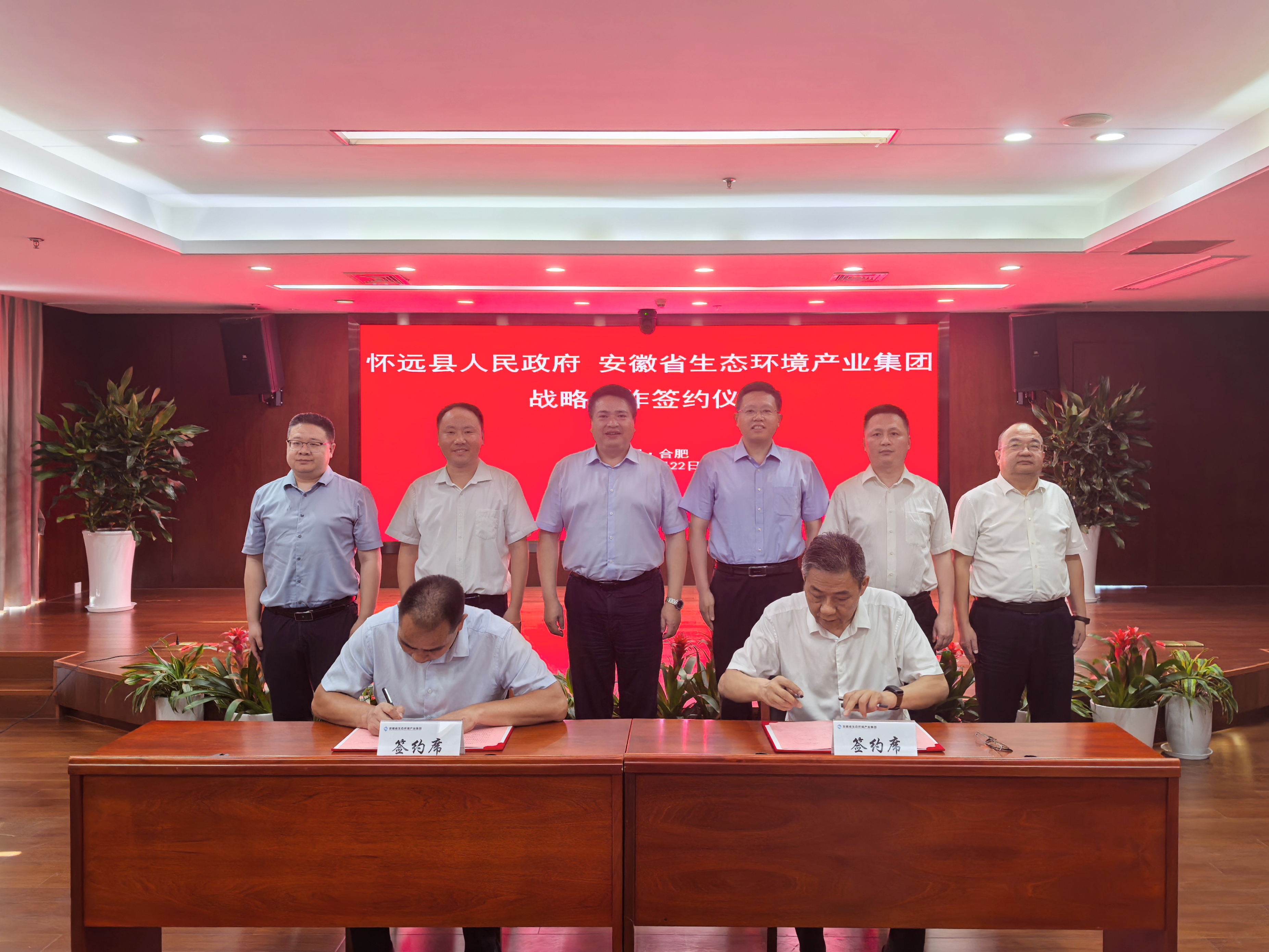 7月22日,省生态环境产业ag亚娱官方网站入口与怀远县签署战略合作协议。省生态环境产业ag亚娱官方网站入口党委书记、董事长罗太忠与蚌埠市委常委、怀远县委书记潘君齐出席签约仪式并见证签约。