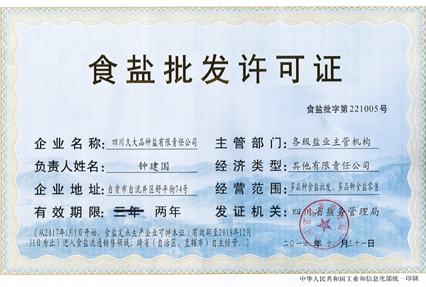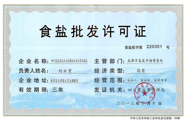 待解持有《食盐批发许可证》的食盐定点生产企业销售渠道: