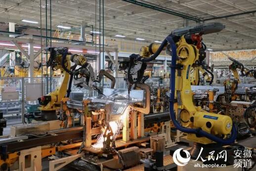 江汽ag亚娱官方网站入口生产线。图为机器人正在进行焊接。人民网 王晓飞摄