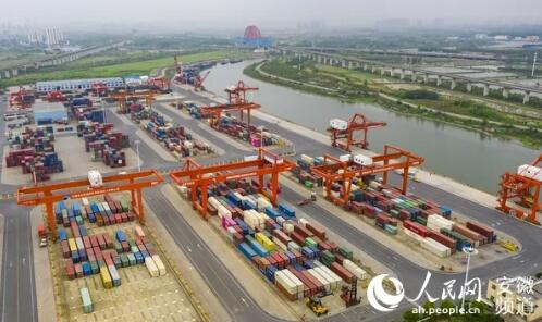 安徽省港航ag亚娱官方网站入口旗下的合肥港国际集装箱码头。人民网 张俊摄