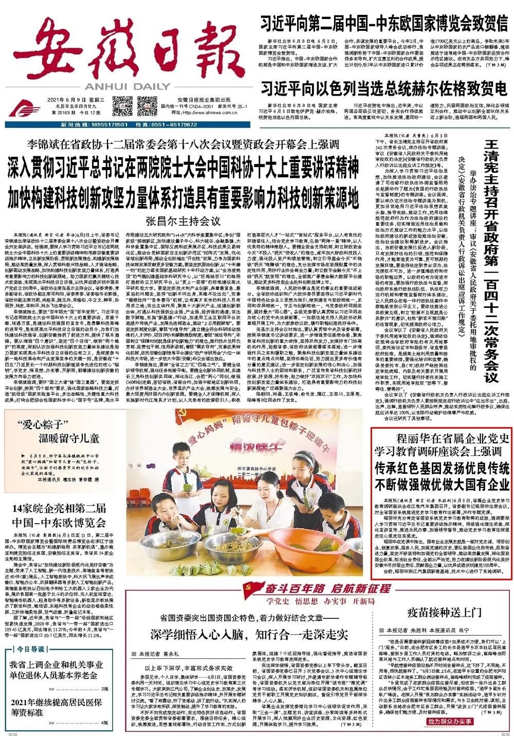 省属企业党史学习教育调研座谈会6月8日召开,省委副书记程丽华出席会议。安徽新闻联播和安徽日报头版对此进行报道,一起来看: