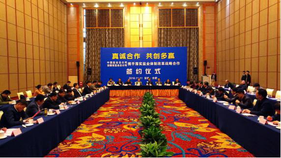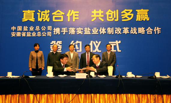 2016年11月11日,安徽省盐业总公司与中国盐业总公司在合肥签署战略合作协议。安徽省国资委、经信委等部门领导,中国盐业总公司党委书记、董事长李耀强,安徽省盐业总公司党委书记、总经理詹先豪等领导共同出席签约仪式。中国盐业总公司所属中盐上海、中盐安徽、中盐长江、中盐金坛、中盐新干、中盐舞阳等二级企业主要领导也共同参与了此次活动。