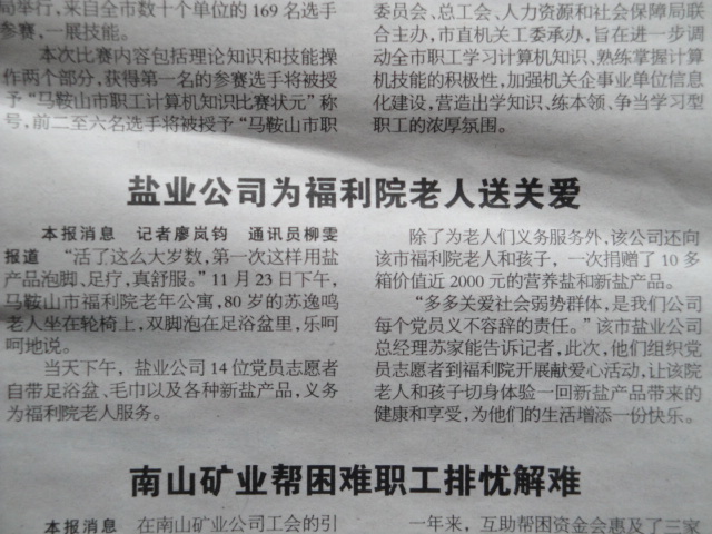 《皖江晚报》:盐业公司为福利院老人送关爱