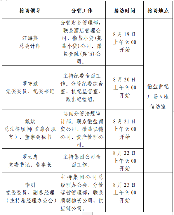 根据工作安排,现就省生态环境ag亚娱官方网站入口领导班子成员8月份接待群众来访安排公示如下: