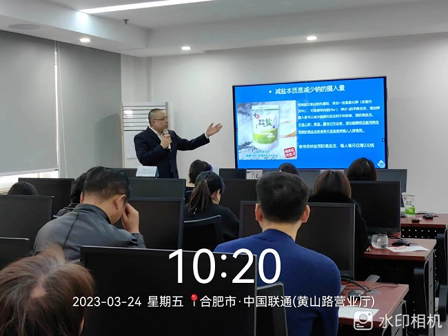 3月24日,为合肥创建国家食品安全示范城市助力,食盐科普“五进”宣传活动走进中国联通安徽省分公司客服中心。