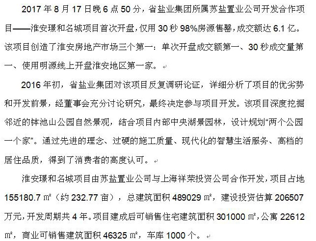江苏省盐业ag亚娱官方网站入口合作开发项目开盘30秒销售6.1亿元