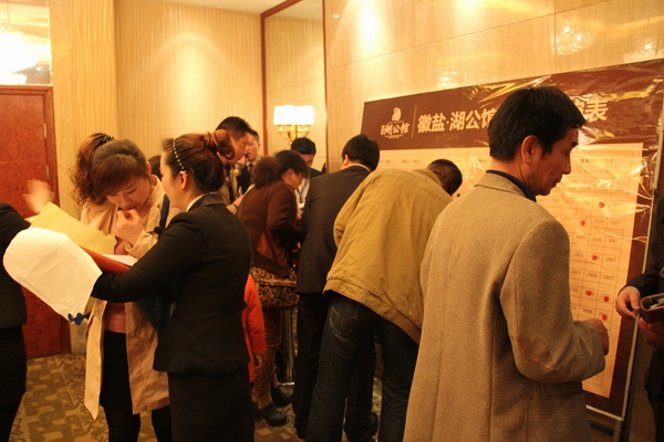 活动当天,虽然下着雨,客户们冒雨还是一大早地赶到现场,天未亮便在酒店排起长长的队伍等候选房。容纳400人的活动大厅内座无虚席。在六安市房地产大盘林立,存量激增,降价打折风日盛的情况下,徽盐·湖公馆首次公开选房却实现了冷市热销不一样的风景。活动当日,通过现场摇号,即成功选房141套,选房成功率高达61.57%。