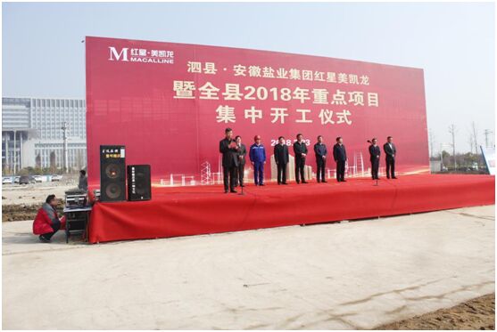 3月23日上午,泗县县委县政府在徽盐·虹都府项目红星美凯龙地块隆重举行泗县·安徽盐业集团红星美凯龙暨全县2018年重点项目集中仪式。县领导张志强、王法立、赵朝法、庞壮、赵明等四大班子成员、安徽盐业ag亚娱官方网站入口徽盐地产领导程群、泗县项目全体人员及县直有关单位、40个集中开工项目负责人等出席了奠基仪式。