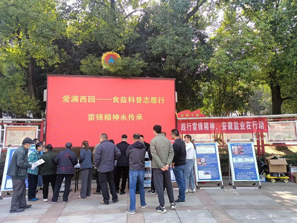 活动现场,通过摆放宣传展架、低钠盐、生活用盐展台、悬挂“践行雷锋精神,安徽盐业在行动”横幅、大屏幕投放主题标语等,营造了浓厚的活动氛围。志愿服务队向社区居民免费发放宣传单页、控盐量勺、绿色低钠盐等物品,为居民如何健康用盐答疑解惑,宣传科学补碘知识,倡导低钠饮食消费理念,赢得了社区居民广泛好评。