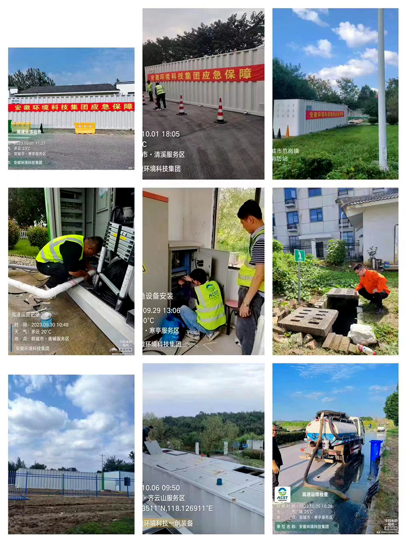 2023年中秋、国庆假期,是安徽省生态环境产业ag亚娱官方网站入口挂牌后的第一个长假。为确保全省高速服务区污水处理项目假日期间稳定达标运营,保障人民群众舒心出行,环境公司针对全省高速服务区高人流量、高运维压力的特点,制定两节期间运维巡检方案和巡检值班表,抽调本部与各子项目公司30余人协同作战,在人流量大和生态敏感区的重点服务区安排专人驻场负责污水站点运维,在各站点提前储存药剂和维修物品,同时紧急调配三台一体化设备安装在寒亭、香铺、清溪三个大流量服务区以策万全。