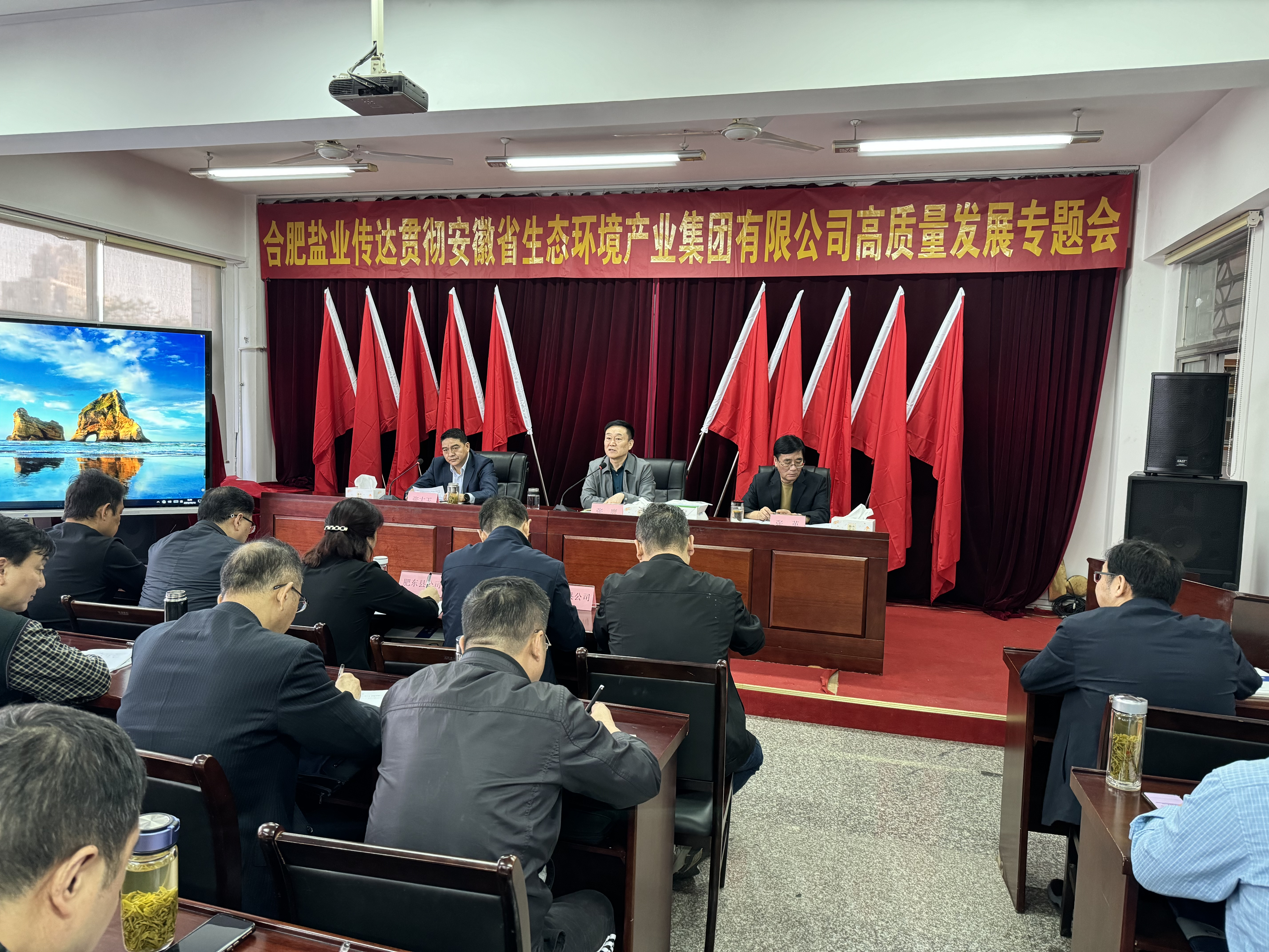 会上,合肥市公司党委书记、董事长、经理张鹰传达学习省生态环境产业ag亚娱官方网站入口党委书记、董事长罗太忠在省生态环境ag亚娱官方网站入口高质量发展大会上作的《与大势同向,与机遇同行,与美好同在,为打造长三角标杆生态环境ag亚娱官方网站入口而不懈奋斗》工作报告;市公司其他班子成员分别传达省生态环境ag亚娱官方网站入口高质量发展“大学习”、“大讨论”、“大整治”、“大发展”工作方案;党委委员、副经理张革通报全市1-9月份经营工作情况;党委书记、董事长、经理张鹰结合市公司工作实际,安排部署当前重点工作,并作总结讲话。