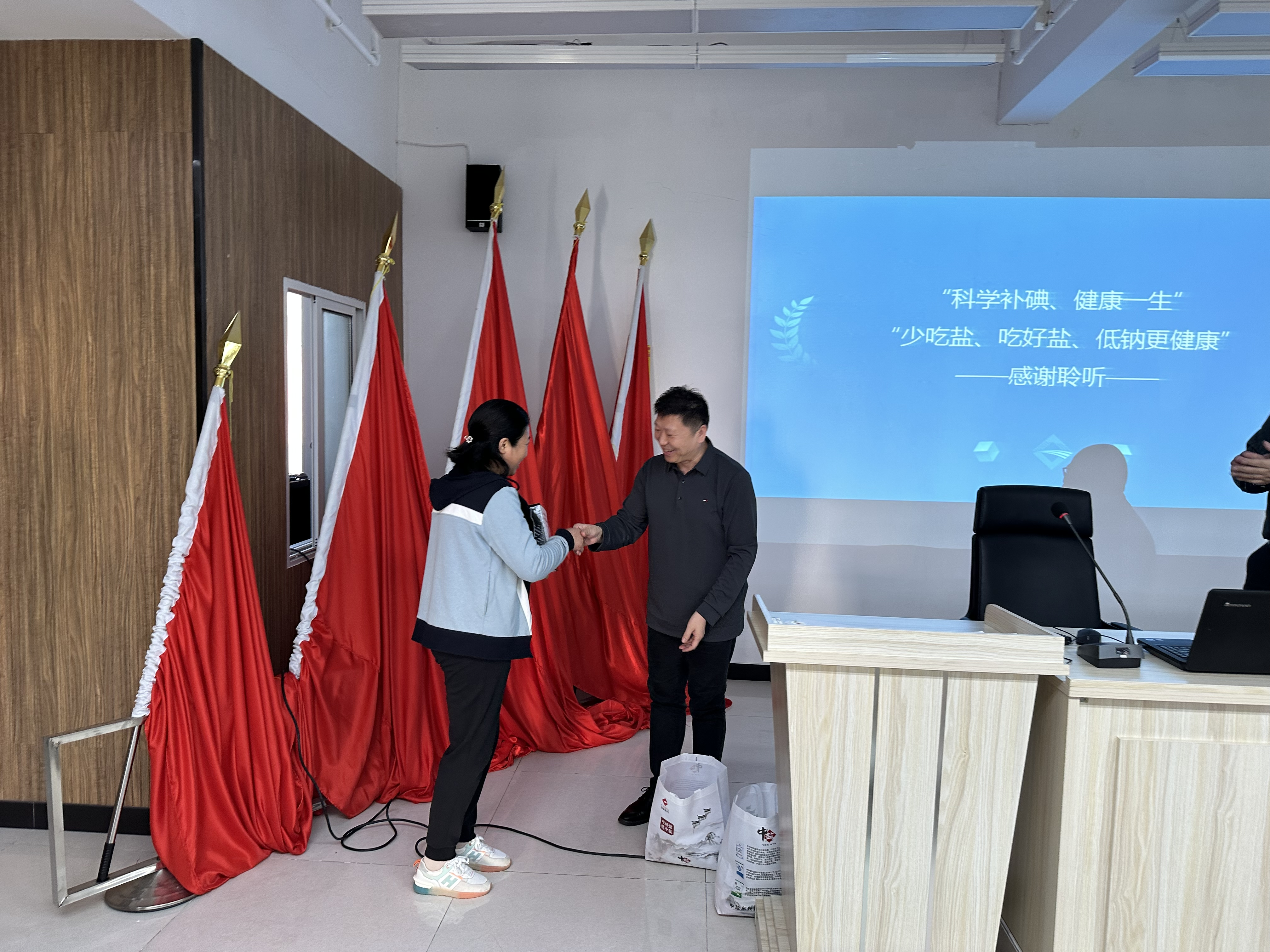合肥盐业营销中心副主任方岩用通俗易懂的语言、生动细致的事例,以图文并茂的方式讲授了《食盐安全与健康》专题讲座,讲解科学补碘、健康减盐的意义,同时,还针对网络谣言进行了辟谣、介绍科学减盐新理念。