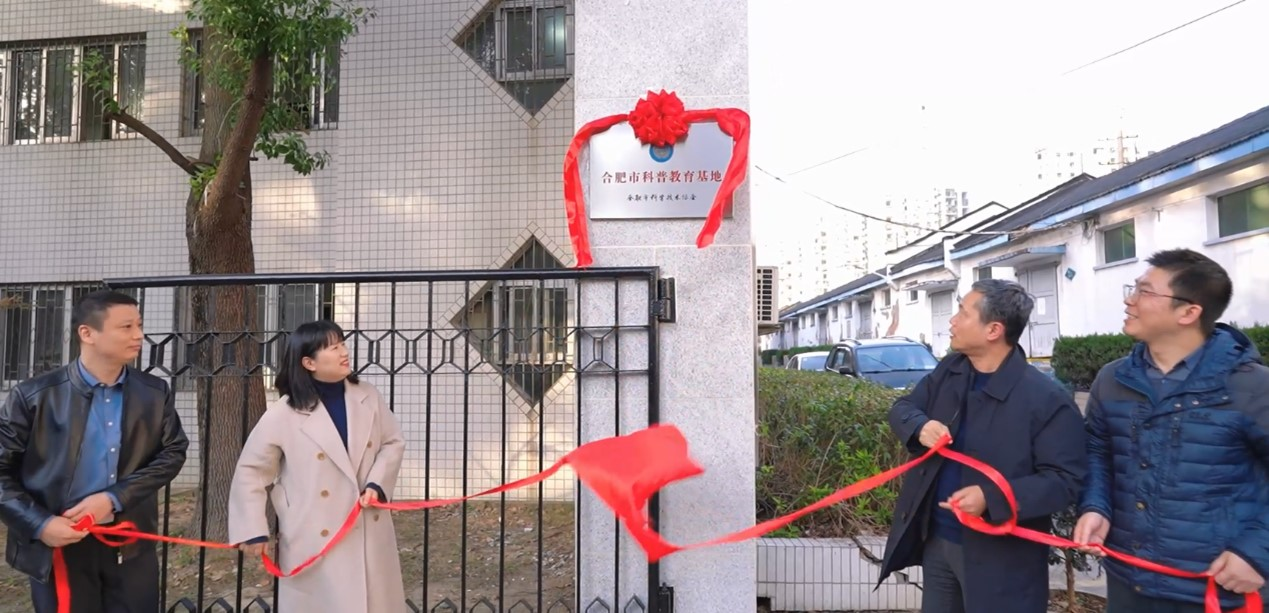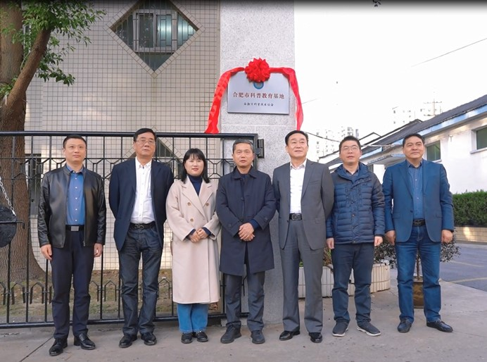 座谈会后,出席仪式的领导共同为“合肥市科普教育基地”揭牌,并合影留念。