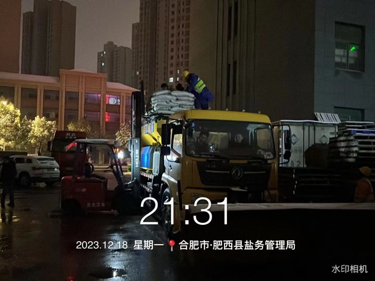 为应对此次低温雨雪冰冻灾害,合肥一市五县干部职工,不畏艰苦、不畏严寒,“浴”雪奋战,共为保障供应融雪盐1782吨。目前,各单位供应平稳有序,库存保障充足,能够满足极端天气下的融雪需求。