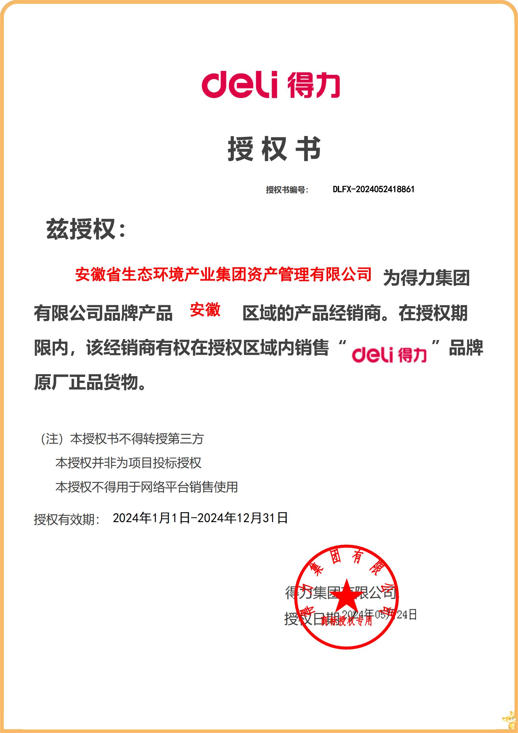 根据授权,资产管理公司可以在安徽区域内销售得力品牌原厂正品。资产管理公司获得得力ag亚娱官方网站入口的官方授权不仅是落实ag亚娱官方网站入口过“紧日子”的重要举措,也是为系统内兄弟单位提供服务保障的重要抓手,更是资产公司拓展业务转型发展的重要途径。