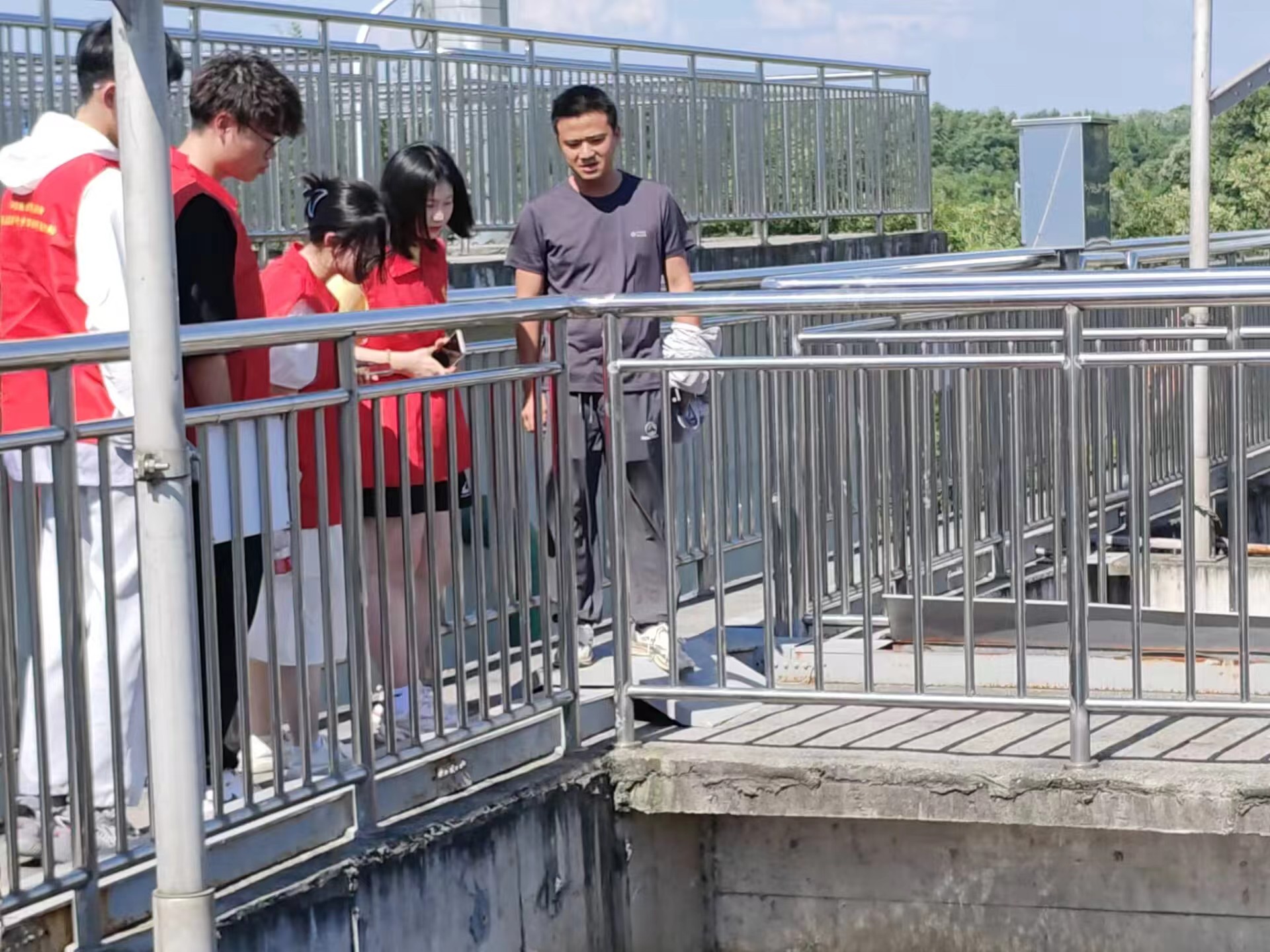 7月4日下午,河海大学志愿者一行到环境科技ag亚娱官方网站入口所属项目公司立弘水务开展江苏省大学生在行动暨志愿者千乡万村环保科普行动。