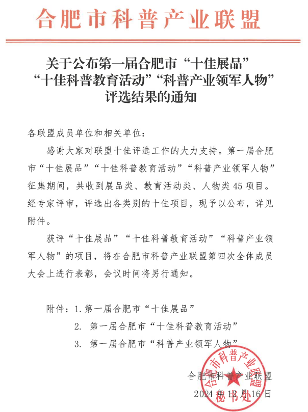 “盐”学之旅科普志愿服务活动,还荣获过“2024年度长三角优秀科技志愿服务品牌活动”“2024年合肥市志愿服务大赛银奖”等殊荣,并获得中共合肥市委社会工作部5000元的项目资金支持。