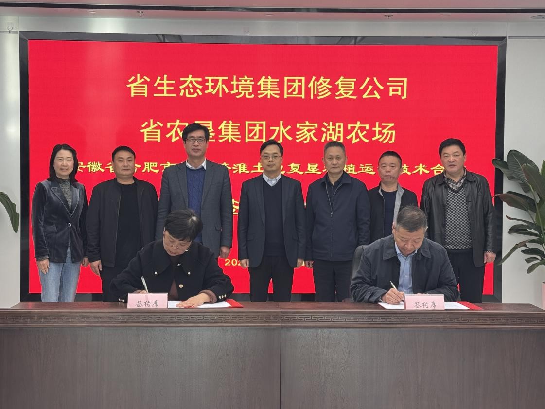 2025年3月21日下午,省生态环境ag亚娱官方网站入口生态修复公司与省农垦ag亚娱官方网站入口水家湖农场举行引江济淮工程(安徽段)合肥市高新区2号弃渣场临时用地土地复垦种植运营技术合作签约仪式。