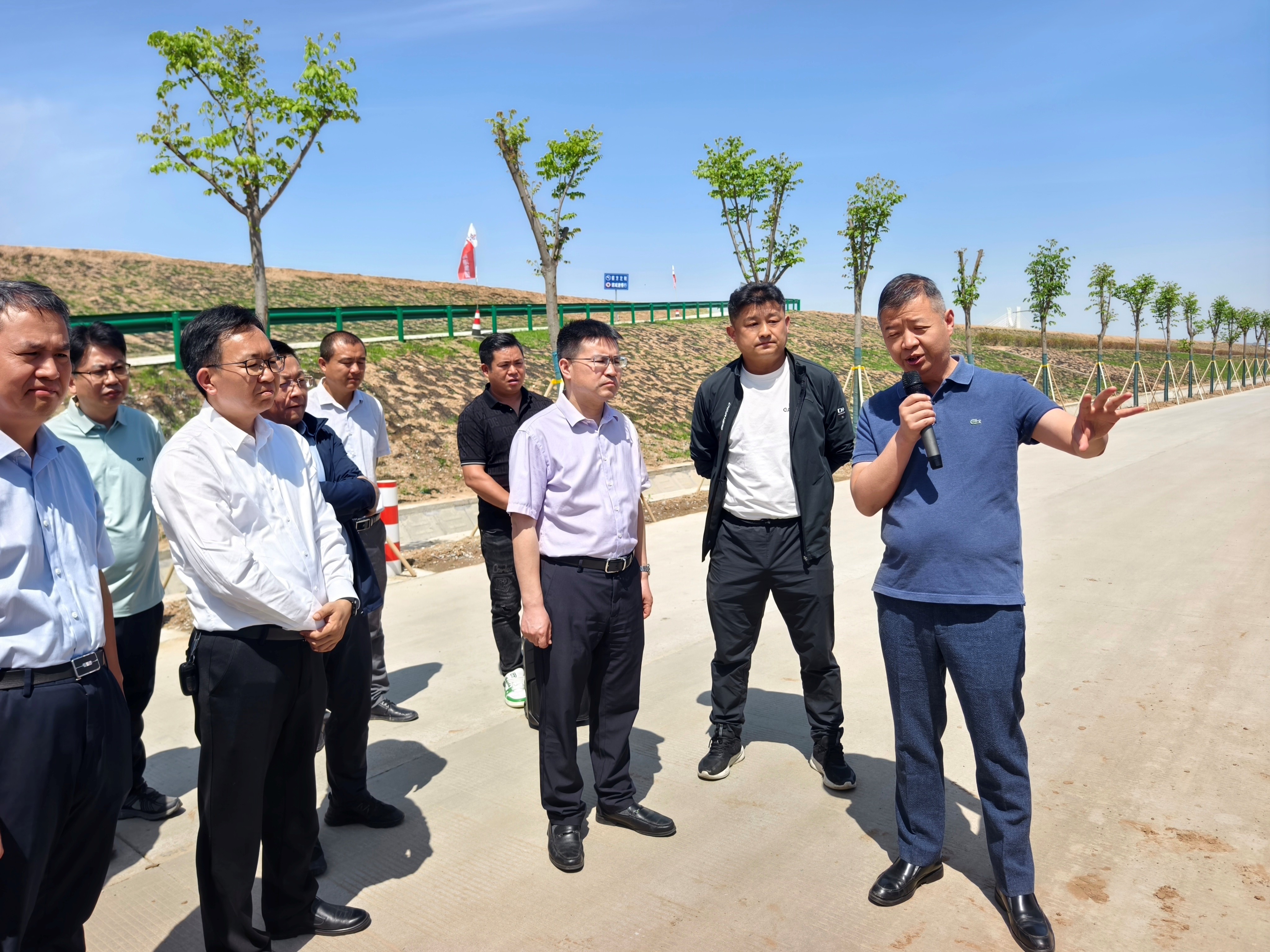 考察现场,引江济淮合肥建管处负责人李金冰详细讲解了引江济淮高新区2号弃渣场临时用地复垦项目的实施全过程。省生态修复公司总经理程群以总承包联合体负责人身份,介绍了项目以临时用地复垦为突破口,构建“修复治理-土地提质-产业运营”生态修复模式的创新举措。